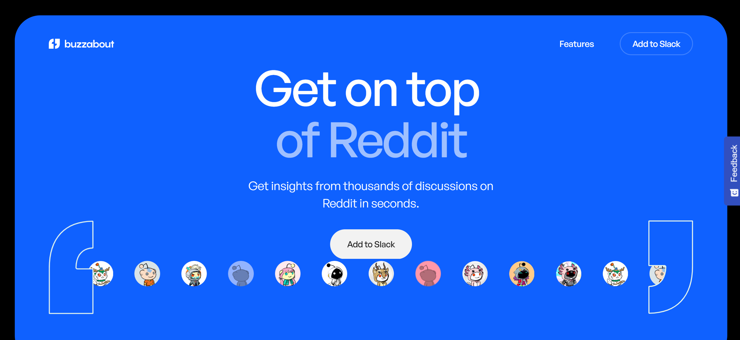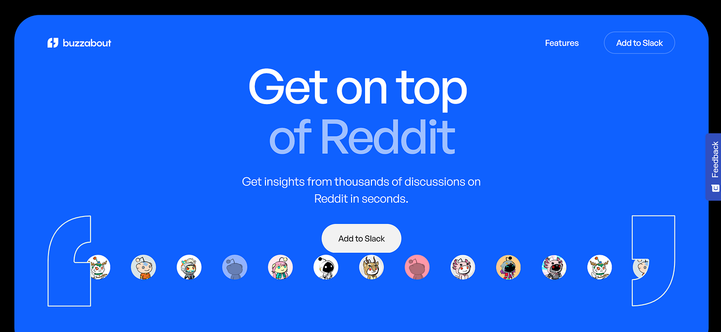 Buzzabout is a Slack app, which means no separate sign-up or fancy UIâitâs all embedded into Slack. Thatâs great if youâre already on Slack; it makes sharing research with your team a breeze. But if youâre not using Slack, or youâre just a solo builder who wants to keep all your findings in a private stash, well, thatâs a bit of a bummer.
