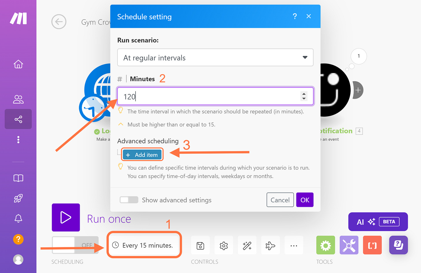 The final touch: scheduling the automation to run. I set it to check every two hours on Tuesdays, Wednesdays, and Thursdays between 7:30 PM and 10:30 PM.